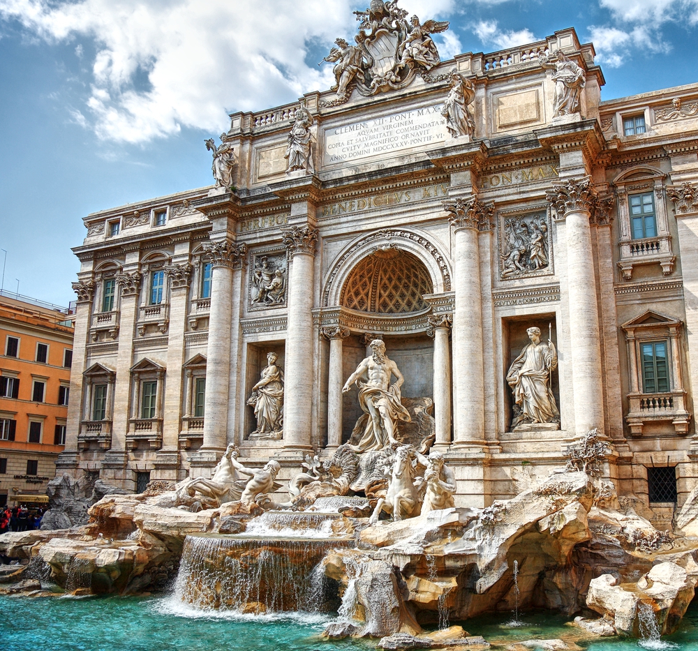 Visit the beautiful fountain Fontana di Trevi. A most beautiful fountain it is said that if you throw a coin into it over you shoulder then you shall return to the city over and over again. Neptune supported by Tritons on either side statutes are in the center of the fountain.